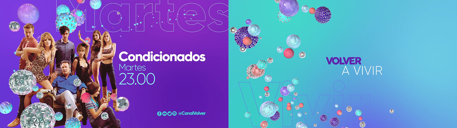 For the 25 years Anniversary of Volver Channel we created a dynamic and warm graphic with nice elements that play along the screen.